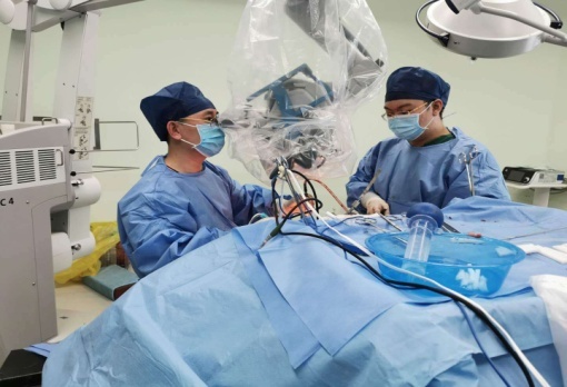 患者入院第三天,王主任团队在微创显微镜下为患者清除了脑内的血肿。