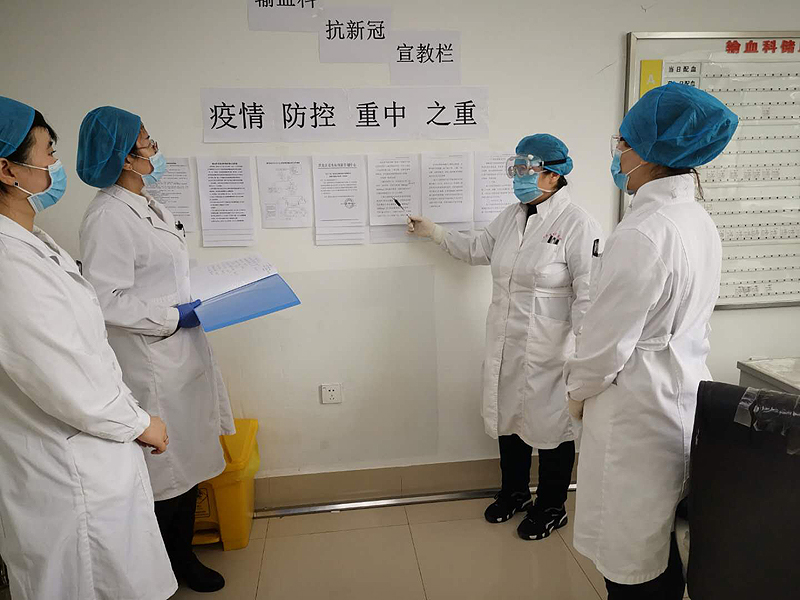 在这场没有硝烟的战“疫”中,输血科医护人员积极迎战。主管技师梁寒梅和技师李丹丹率先行动,筹措防护用品,保证防护安全;柳丹丹主动请战支援新冠病毒核酸检测,圆满完成支援任务;还有王金霞、纪婷婷、王晓晨、王艳娟等,在疫情面前,输血科的全体医护人员挺身助力,众志成城、“与”血奋战、热“⾎”参与,将初心和使命付诸于行动。